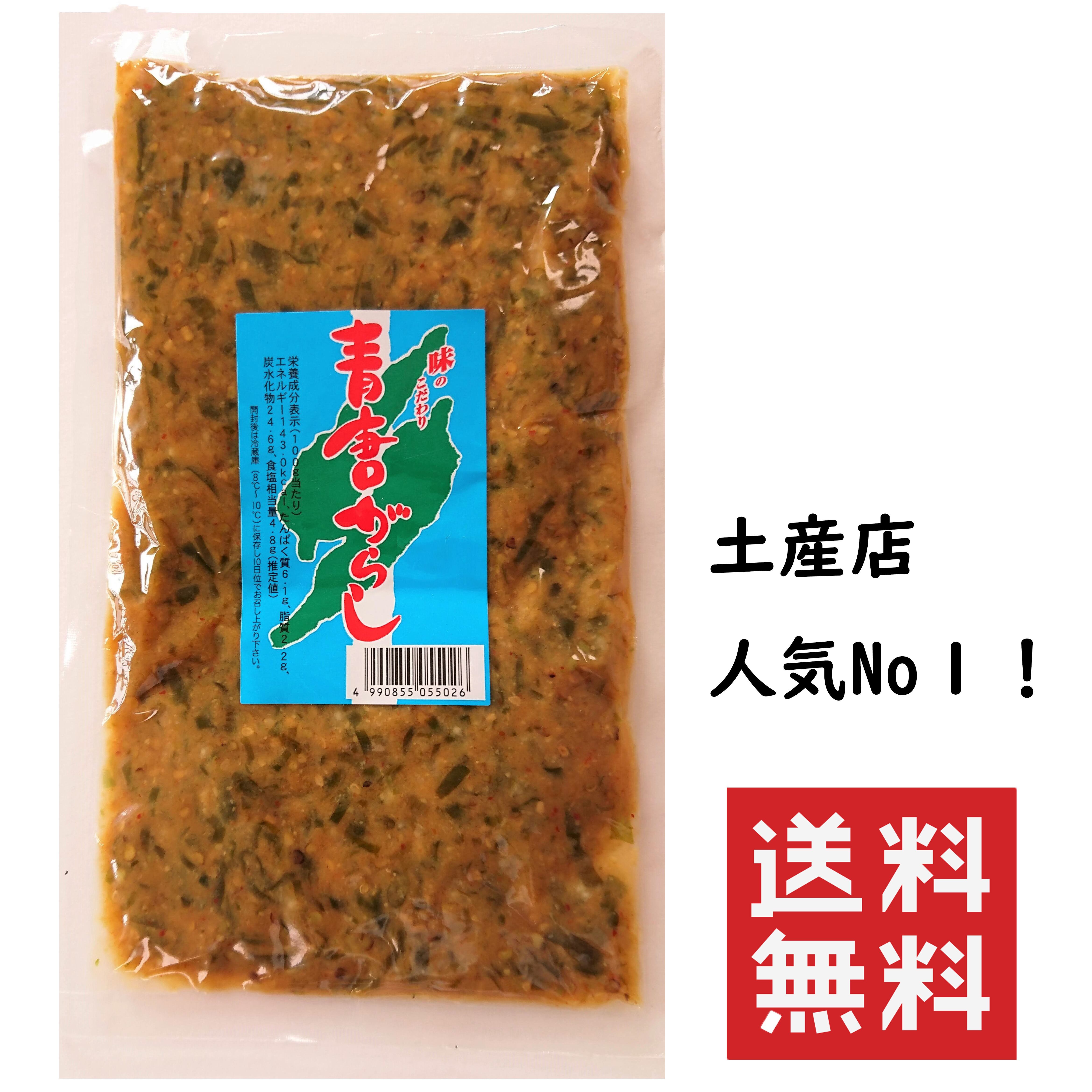 味噌、青唐辛子、砂糖、もろみ、食塩、ごま、寒天、一味唐辛子、ソルビット、調味料(アミノ酸等)、酸味料、甘味料(ステビア)、着色料(カロチノイド、カラメル、銅葉緑素)、酸化防止剤(V,C)、酒精、(一部に小麦・大豆・ごま・ゼラチンを含む)